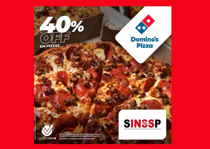 Sexta-feira pede uma pizza com a galera! Somente aqui no Clube Certo SINSSP o servidor filiado ao sindicato garante na Domino’s 40% OFF para se deliciar com pizzas incríveis e saborosas!