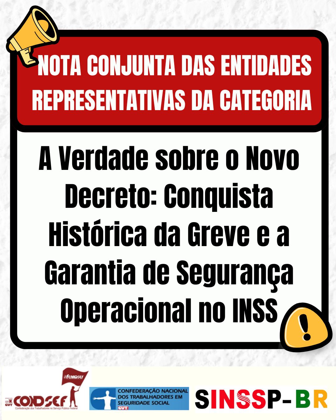A CONDSEF/FENADSEF e a CNTSS/CUT reafirmam seu reconhecimento e confiança no trabalho conduzido com seriedade e transparência pelas Entidades Signatárias e pelo INSS. O Decreto está pronto, é tecnicamente preciso, juridicamente sólido e valoriza a Carreira como um todo e garante a excelência no atendimento à população brasileira.