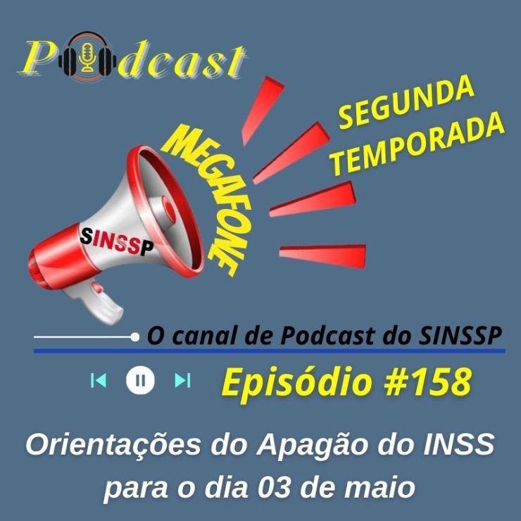 No episódio #158 da segunda temporada do MEGAFONE, o canal de Podcast do SINSSP traz orientações de como o ouvinte pode participar da mobilização convocada pelo SINSSP-Br para o dia 03 de maio, o APAGÃO DO INSS Fique sintonizado com a gente!