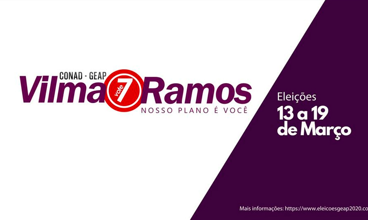Dessa forma, conto com o seu voto: para o CONAD vote Vilma Ramos, número 7 e para o CONFIS vote Irineu Messias, número 6.