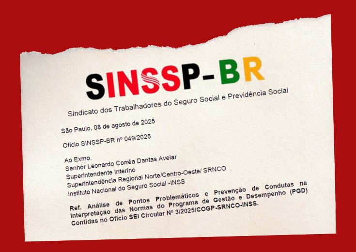Na última sexta-feira (08), o SINSSP-BR enviou ofício ao superintendente interino, Leonardo Corrêa Dantas Avelar, da Superintendência Regional Norte/Centro-Oeste (SRNCO), solicitando reunião para alinhar, sob o âmbito da legislação nacional, as normas do Programa de gestão de Desempenho (PGD) contidas no OF SEI Circular Nº 3/2025/COGP-SRNCO-INSS.