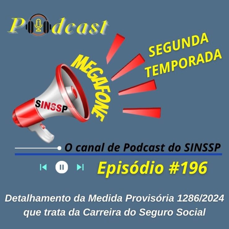No episódio #196 da segunda temporada do MEGAFONE, o canal de Podcast do SINSSP-BR conversa com Piero Paz, diretor da pasta de Formação Sindical, para explicar detalhadamente para os nossos ouvintes sobre o teor das emendas apresentadas pelo Sindicato à Medida Provisória 1286/2024 que trata da Carreira do Seguro Social.