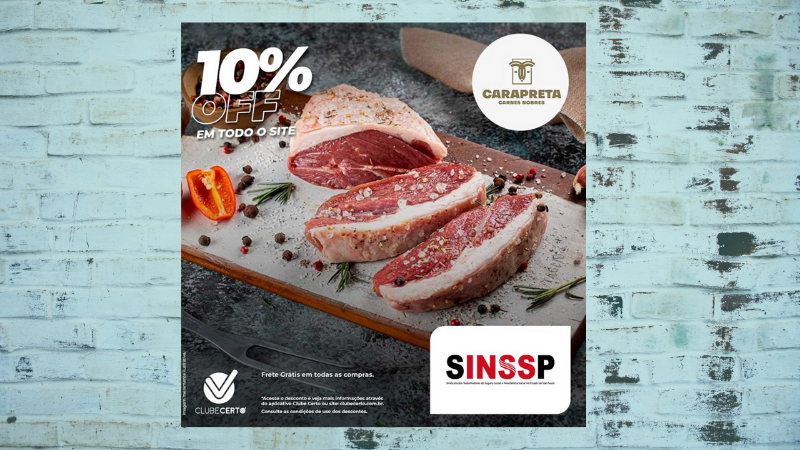 Pensou em churrasco? Ele merece a melhor carne e aqui no Clube Certo SINSSP quem é filiado ao sindicato encontra na boutique Cara Preta as carnes nobres para seu churrasco, com 10% OFF. Aprecie, e com desconto!