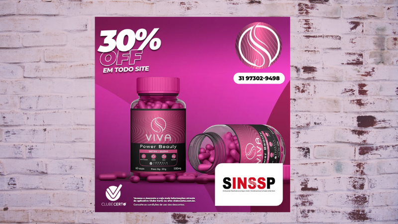 A Viva Power Beauty garante cabelos com crescimento até 4 vezes mais rápido e com redução de até 90% da queda; pele com firmeza e elasticidade e unhas fortes e resistentes. O mais incrível é que o servidor filiado ao SINSSP garante 30% OFF em todo o site do produto.