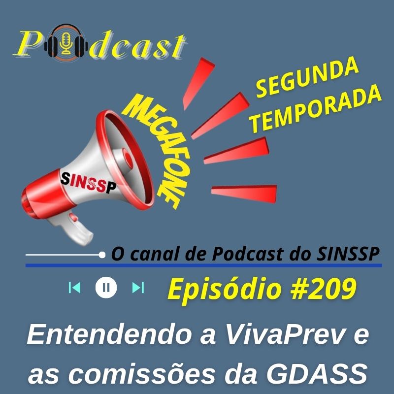 No AR o episódio #209 da segunda temporada do MEGAFONE e o canal de Podcast do SINSSP-BR aborda dois temas importantes dos quais muitos servidores desconhecem: a VivaPrev e as comissões da GDASS. O SINSSP-BR teve diretores eleitos em ambas as frentes e por isso explica neste programa a importância e a funcionalidade de cada um deles.