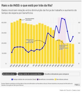 A Agência Pública investigou dados dos últimos 20 anos para identificar os principais gargalos que fazem a fila do INSS aumentar e o órgão lidar com a perda de servidores. Se de um lado há estados que aguardam uma média superior a 100 dias para ter o caso sequer analisado, do outro, trabalhadores do órgão reclamam de número insuficiente de vagas, problemas tecnológicos e condições de trabalho que levam até ao adoecimento. O resultado vem sendo a certeza de que apenas o esforço não tem sido capaz de fazer frente ao tamanho do problema para manter o funcionamento da estrutura de um dos maiores sistemas de proteção social do planeta.