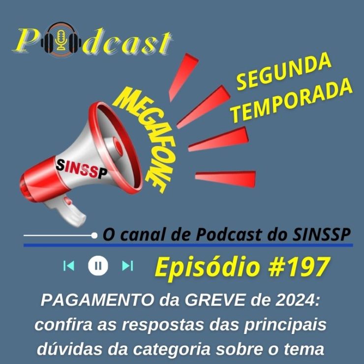 No AR o episódio #197 da segunda temporada do MEGAFONE e o canal de Podcast do SINSSP-BR conversa com o diretor do Sindicato, Leonardo Fonseca, sobre todos os detalhes do pagamento da greve de 2024, um tema que rendeu muitas dúvidas aos servidores.