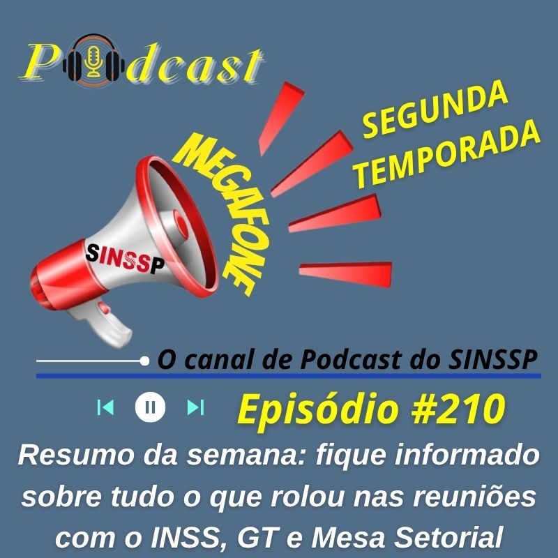 No AR o episódio #210 da segunda temporada do MEGAFONE e o canal de Podcast do SINSSP-BR traz os informes e avaliações das três reuniões, muito importantes, que ocorreram nesta semana: do GT das atribuições, com o presidente do INSS e da Mesa Setorial.