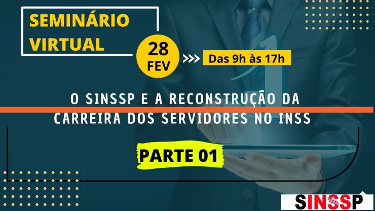 Nesta primeira parte do seminário virtual do SINSSP vamos tratar das "Concepções de Estado na perspectiva da construção da Politica de Carreira do INSS". A segunda parte do evento que tratou sobre "Definindo o Plano de Carreira que queremos", estará disponível a partir de amanhã, 03/03/2023.