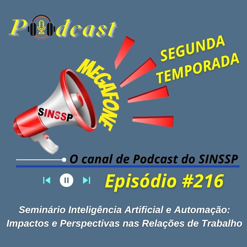 No episódio #216 da segunda temporada do MEGAFONE, o canal de Podcast do SINSSP-BR fala sobre Inteligência Artificial e automação nas relações de trabalho, trazendo detalhes do Seminário que vai tratar sobre esse tema e que será transmitido ao vivo no canal oficial do SINSSP-BR no YouTube.