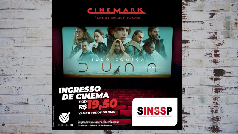 Você não vai perder os grandes sucessos que estão em cartaz e claro com o melhor preço. Quem é filiado ao sindicato garante ingresso por apenas R$19,50 em qualquer dia da semana, isso mesmo que você leu, R$ 19,50.